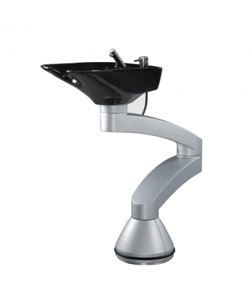 Мойка-трансформер для мытья волос двух коленная. Комплектуется мелкой белой керамической раковиной, комплектом смесителя с черным пластиковым душиком и хромированным дозатором под шампунь. Каркас серебристый.
