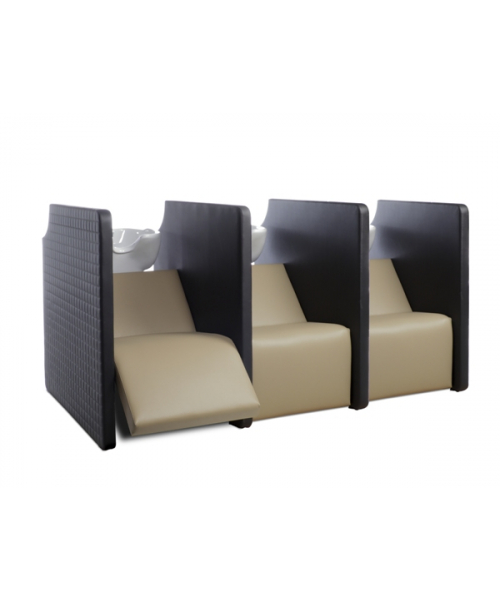 Парикмахерская мойка "Privacy Wash 3P Electric" - трехместная с высоким уровнем комфорта и приватной зоной. Мойка оснащена электрической подножкой, обеспечивая клиенту максимальный комфорт. Мойка комплектуется глубокими керамическими раковинами с регулировкой угла наклона и комплектом смесителя. Обивка - искусственная кожа высшего качества.