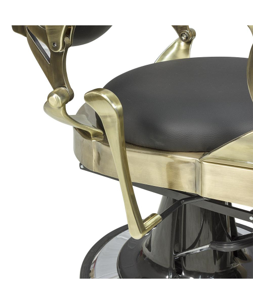 РоссияКресло мужское барбер "Ричард" полированный каркас медного цвета - удобное сидение оснащено широкими подлокотниками для комфорта посетителей. Для поддержания шеи и головы клиента в конструкции предусмотрен мягкий подголовник. Практичная подножка не допустит усталости ног клиентов. Металлическая круглая основа с хромированным покрытием отличается прочностью и устойчивостью. Каркас изготовлен из качественной стали и многослойной фанеры. В качестве наполнителя использован эластичный поролон. Обивка выполнена из экокожи. Материал легко очищается от загрязнений, не боится влияния дезинфицирующих и моющих средств. Благодаря своей структуре экокожа не протирается и долго сохраняет красивый внешний вид. В дизайне кресла присутствует много металлических деталей и фурнитуры под медь или шагрень. Подлокотники и подставка на подножках обиты экокожей, что придает креслу большей солидности, а клиенту максимального комфорта. Гидравлический подъемник, используемый для подъема кресла, способен выдержать высокие нагрузки. Для регулировки угла наклона спинки и подножки используется надежный пневматический механизм. Подъем подголовника осуществляется с помощью механики.