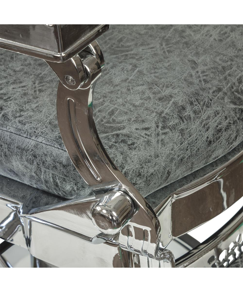Мужской салон – место с повышенной нагрузкой, поэтому оборудование выполнено из надежных и прочных материалов. Каркас кресла в барбершоп изготовлен из прочной стали и установлен на круглое устойчивое основание. По краю основания есть резиновая накладка, предотвращающая скольжение мебели и царапины на полу. Наполнитель – эластичный поролон. В качестве обивки использована экокожа. Материал не впитывает влагу и загрязнения, не деформируется при использовании моющих и дезинфицирующих средств. Декоративные накладки на подлокотниках и подставке для ног из экокожи гармонично дополняют общий дизайн мебели в барбершоп.