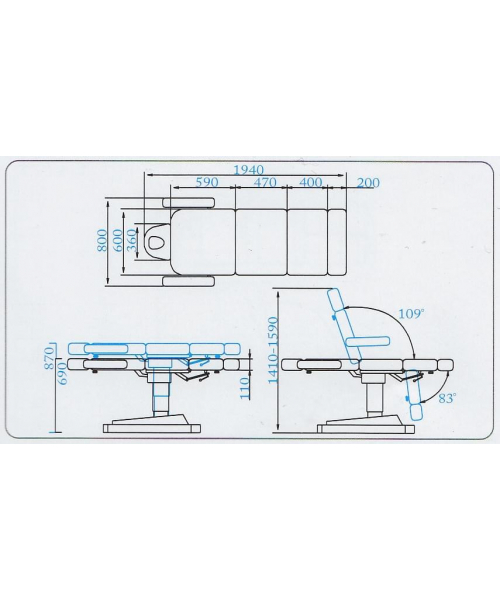 Размер (ДхШхВ): 1940х800х690...1590 мм