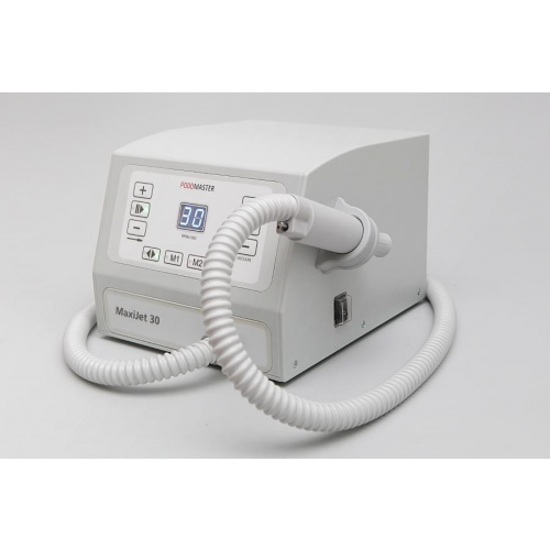 Педикюрный аппарат Podomaster MaxiJet 30 является современной моделью косметологического оборудования, предназначенного для использования в профессиональных косметологических центрах и салонах красоты. Встроенный пылесос позволяет собирать пыль, образовавшуюся во время процедуры, в специальный мешок. Устройство оснащено ультралегким наконечником, цифровым дисплеем, счетчиком часов работы и выключателем на ручке с силиконовым колпачком, защищающим от пыли, Мотор вращается со скоростью 30 000 оборотов в минуту, но с помощью специальной, педали, подключаемой к устройству, мощность можно регулировать самостоятельно.