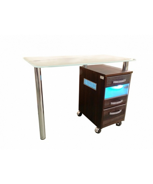 Стол маникюрный с 1 тумбой, со стеклянной столешницей и УФ-блоком "МЦ-051" - столешница изготовлена из закаленного стекла (прозрачное, белое матовое, матовое «бронза», матовое «серебро).
