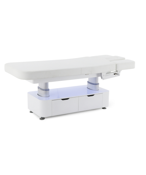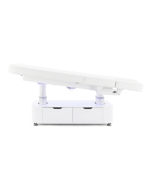 Стол изготовлен с учётом всех потребностей современной индустрии красоты. Мягкое и комфортное ложе имеет несколько секций и 4 мотора для плавной регулировки высоты и угла наклона подвижных частей. Рама изделия выполнена из стали высокой прочности и выдерживает нагрузку до 150 кг, что гарантирует долгий срок службы оборудования.