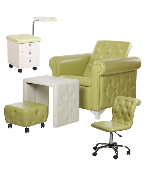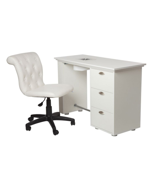 Удобный стул мастера с изогнутой спинкой и декоративными пуговицами, которые украшают внутреннюю часть спинки.